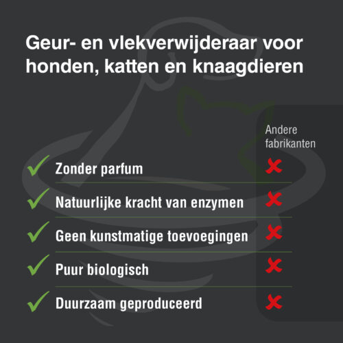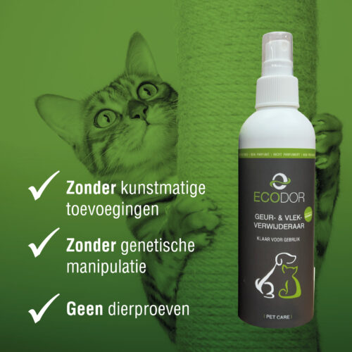 EcoPet Geruchs- & Fleckenentferner ist ein biologisches Spray, der unangenehme Gerüche & Flecken an Stellen, an denen sich Ihr Haustier zeitweise oder dauerhaft aufhält, wie Katzenklo, Hundekorb, Käfige von Nagetieren usw., entfernt.