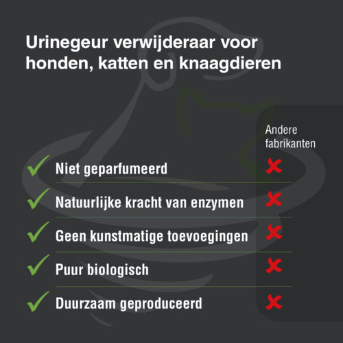 Met twee katten, moeder en zoon, die af en toe een ongelukje hebben ben ik erg blij met UF2000 en EcoFloor. De geur verdwijnt volledig waardoor er op die plek niet opnieuw gesproeid wordt. Ik ben erg tevreden en heb deze producten inmiddels ook aan andere dierenliefhebbers aangeraden.